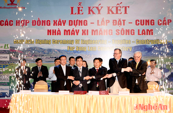 Tối ngày 22/3, tại TP Vinh, diễn ra Lễ ký kết hợp đồng xây dựng, lắp đặt, cung cấp thiết bị dự án nhà máy ximăng Sông Lam.
