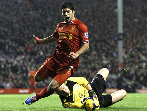 Luis Suarez tịt ngòi, nhưng bù lại, đóng kịch xuất sắc, kiếm phạt đền để Gerrard gỡ hòa 2-2 cho Liverpool trong trận cầu mà họ bị Aston Villa dẫn 2-0 chỉ sau 36 phút.