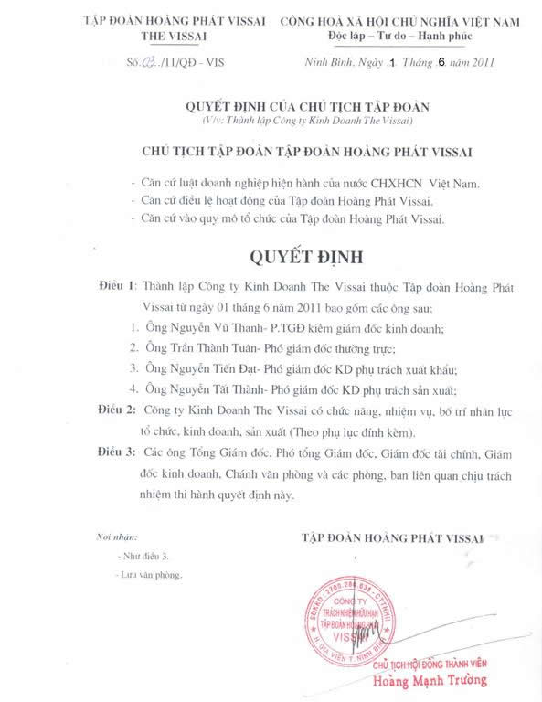Mặc dù tình hình kinh tế trong năm 2011 không được thuận lợi đầy khó khăn và khốc liệt, nhưng Tập Đoàn the Vissai vẫn đứng vững và phát triển mạnh mẽ, trở thành doanh nghiệp dẫn đầu trong ngành xi măng, có mức lương thưởng cho CBCNV dịp tết năm nay ở mức rất cao.